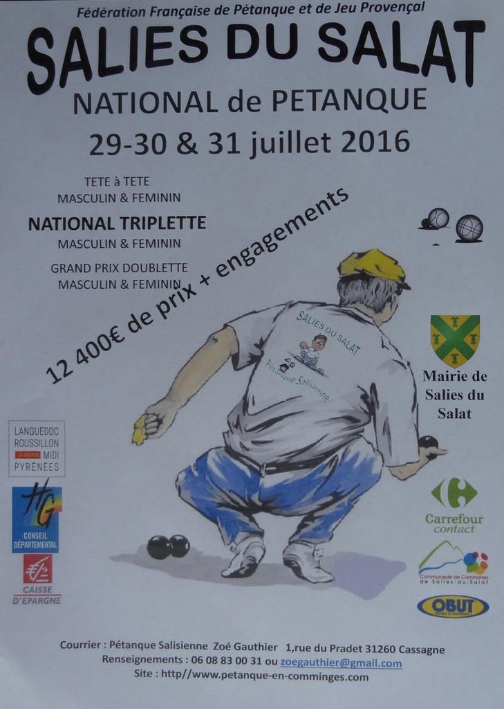 Salies du Salat - National de Pétanque 25 Janvier 2016 Publicité Et un forum sur le BOULISTENAUTE plus l'annonce du concours Merci Didier! Tag(s) : #Canton de Salies, #National de Salies, #Grands concours Masters, #Comminges, #Haute-Garonne
